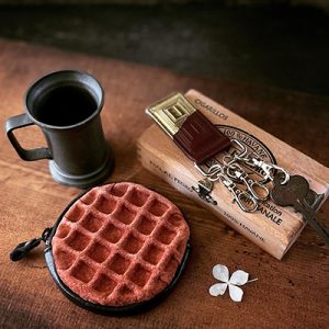 チョコレートやワッフルをテーマにした革小物。 収縮革加工や二重の箔押しといった独自技法に加え、 オリジナル開発の革を用い、 革本来の質感に遊び心と可愛らしさをプラスした革小物をご案内しています